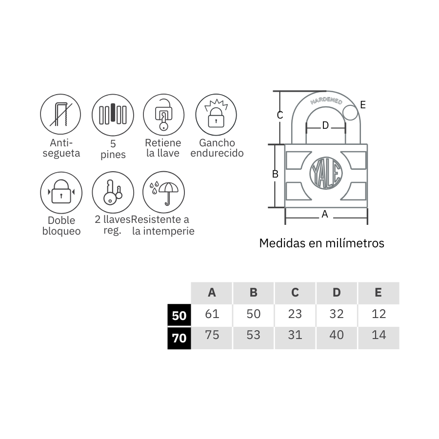 Todos los candados Yale han sido evaluados con pruebas de corrosión aceleradas donde se comprueba su nivel de tolerancia a condiciones ambientales extremas. Resistentes a diferentes condiciones de intemperie, en esta sección encontrará candados apropiados para condiciones ambientales específicas.